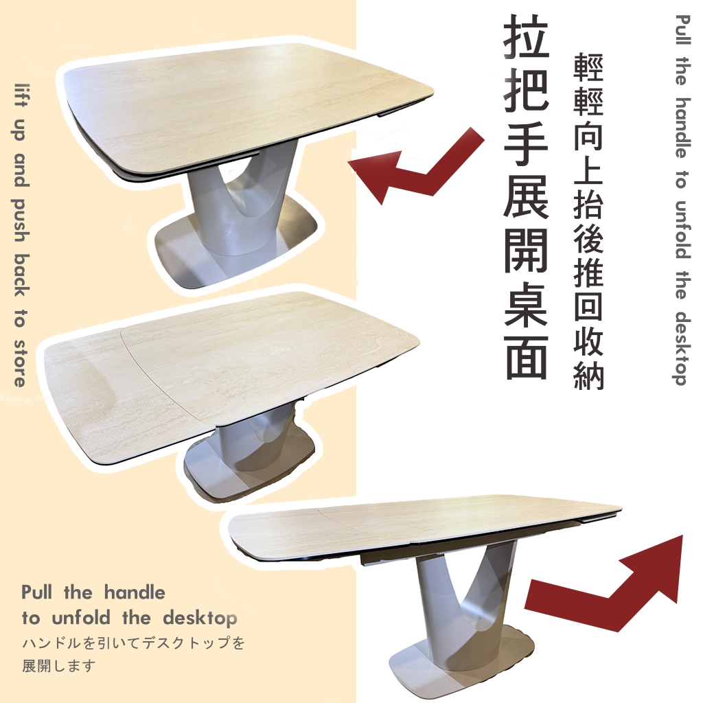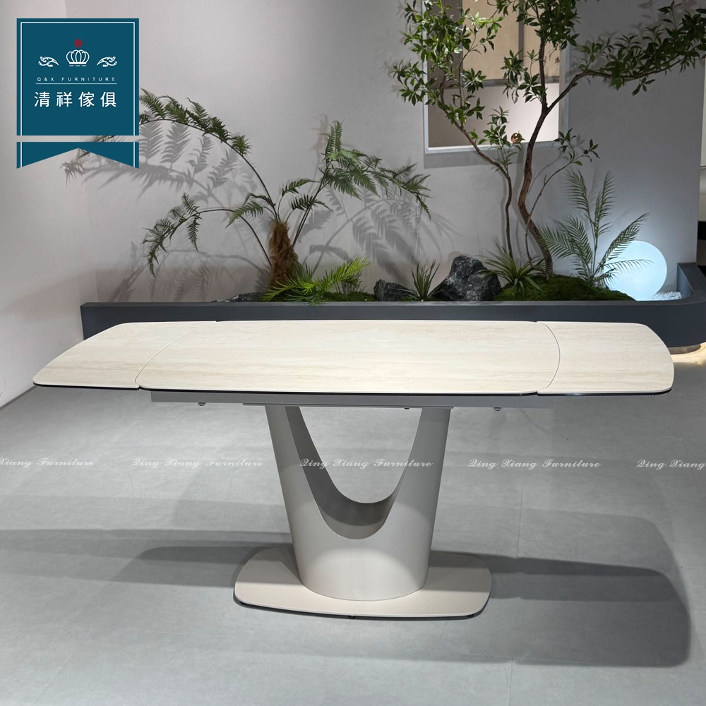 【新竹清祥傢俱】PRT-08RT17 現代黃洞石延伸岩板餐桌 長桌 伸縮桌 餐廳(不含椅) 小U腳