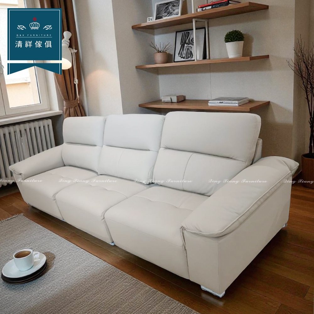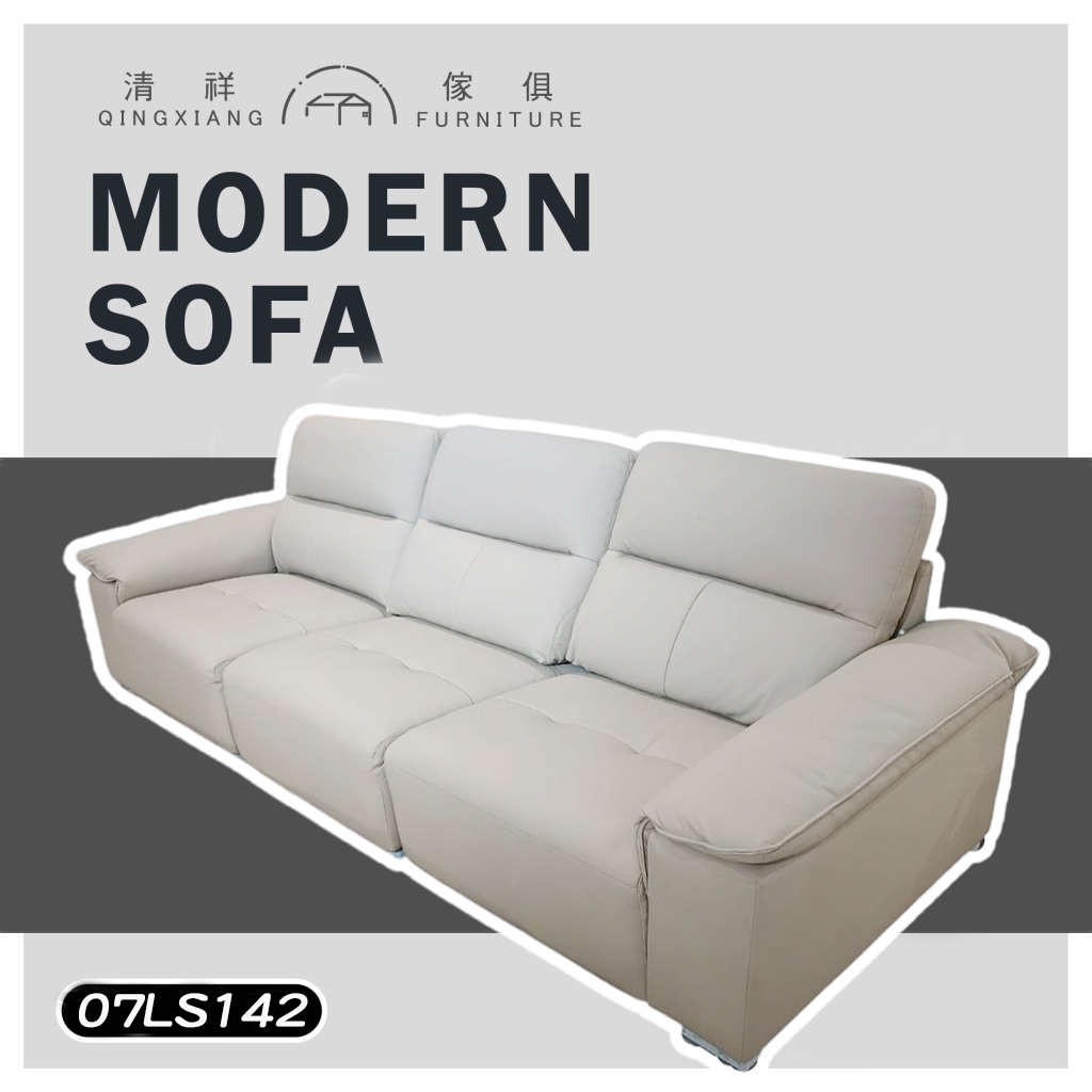 【新竹清祥傢俱】PLS-07LS142-現代風牛皮沙發 可改色 大三位 皮沙發 客廳 一字型