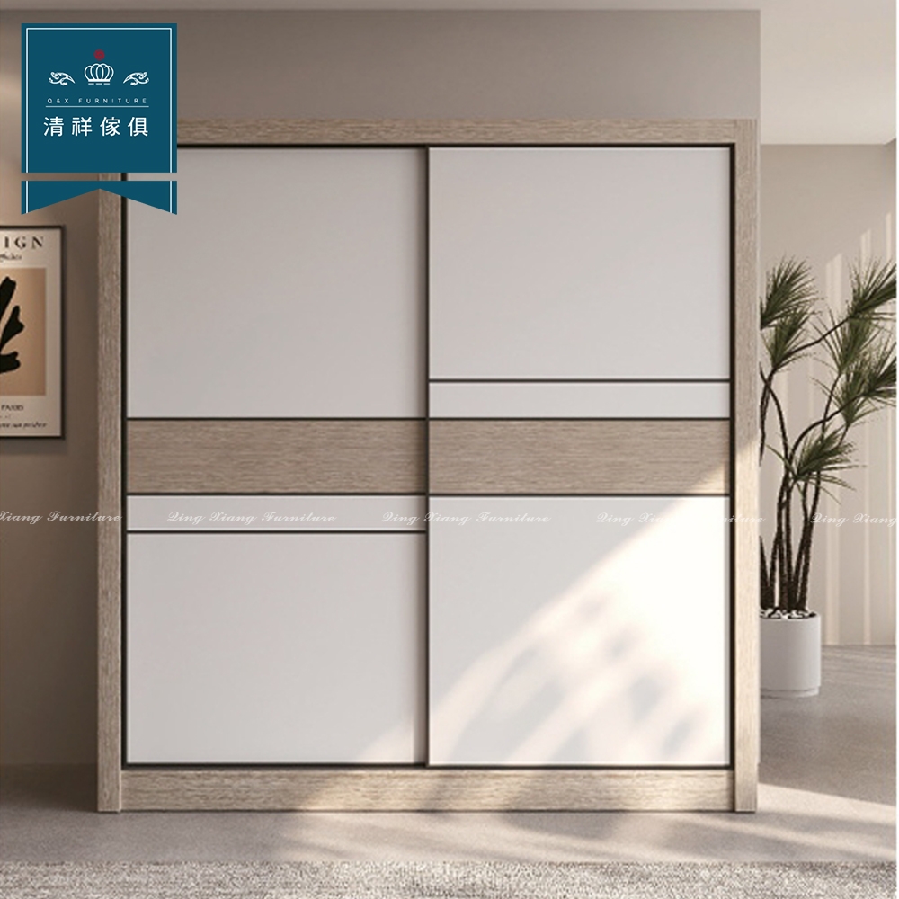 【新竹清祥傢俱】PBF-34BF11-現代雙門滑門衣櫃 掛衣桿 推門衣櫃 置物櫃 臥室 類系統櫃