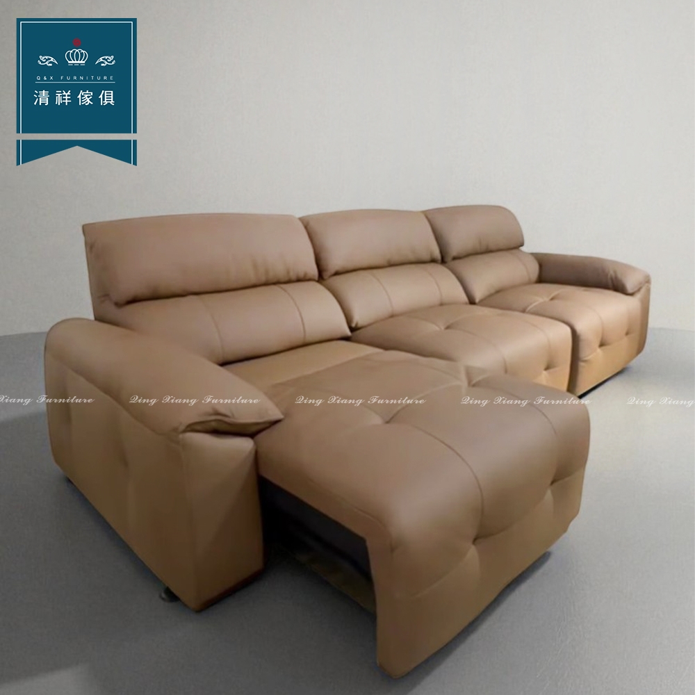 【新竹清祥傢俱】PLS-07LS139-現代電動延伸牛皮沙發 大三位 客廳 功能 沙發床 懶人沙發