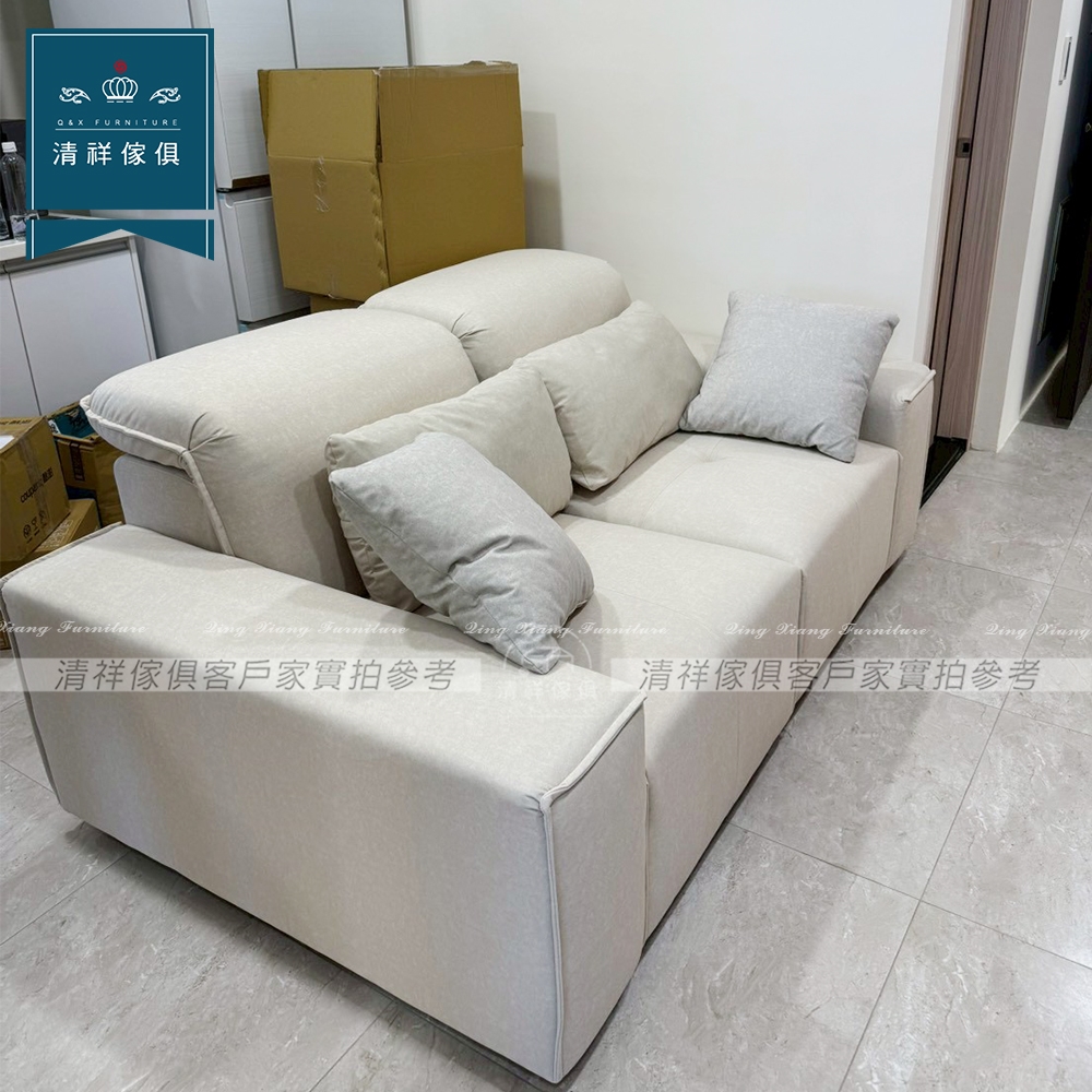 【新竹清祥傢俱】PLS-07LS85-馬爾他泡芙貓抓布沙發 一字形 客廳 可定製改色 調整功能頭靠