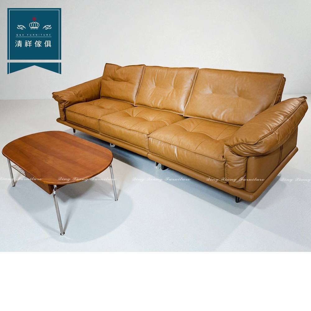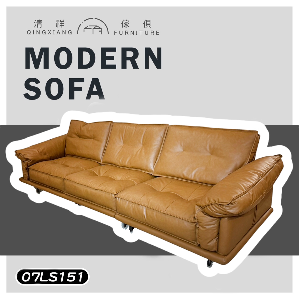 【新竹清祥傢俱】PLS-07LS151-復古慵懶油蠟貓抓皮沙發 大三位 皮沙發 客廳 一字型