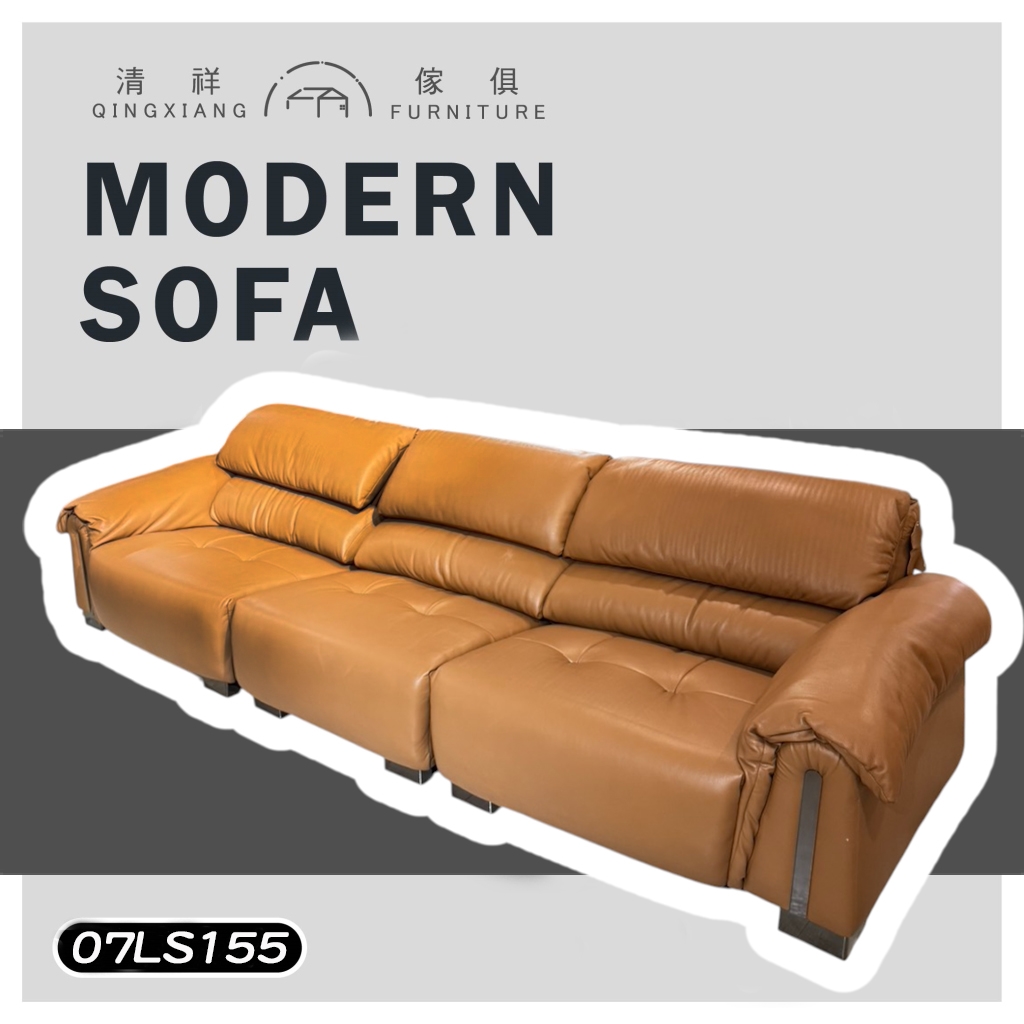 【新竹清祥傢俱】PLS-07LS155-現代舒適牛皮沙發 大三位 皮沙發 客廳 可改色 慵懶 包覆感