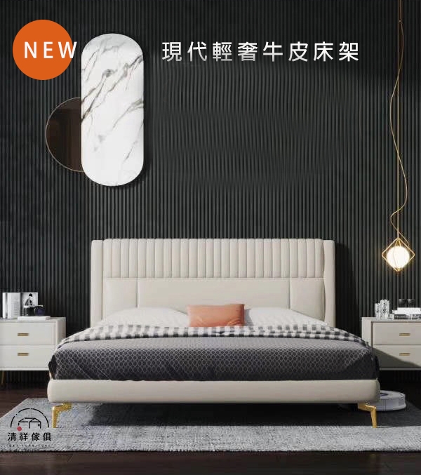 【新竹清祥傢俱】PBB-11BB20-現代輕奢牛皮床架 臥室 飯店 民宿 皮床 可改色